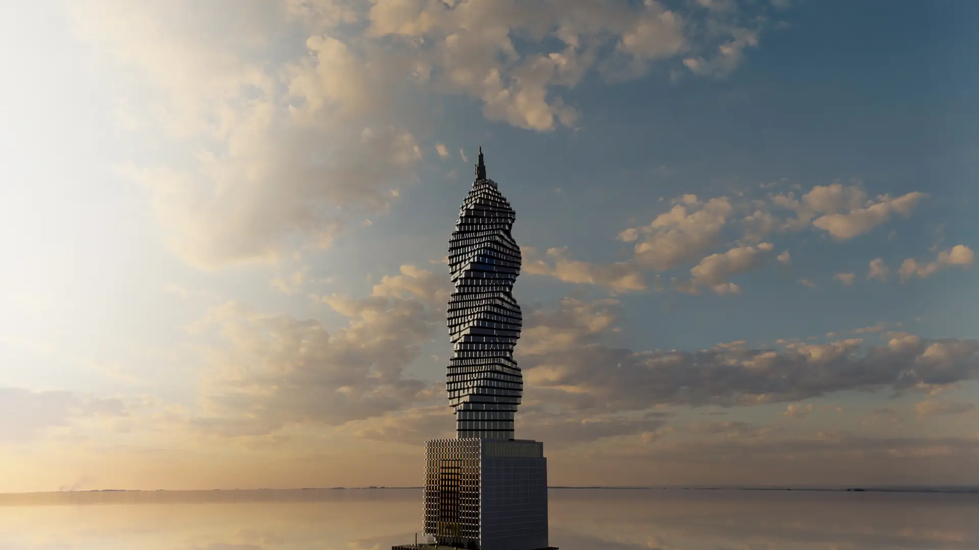 Elke acht verdiepingen is het gebouw 90 graden gedraaid. Door deze draaiing reflecteert elke verdieping het daglicht net ietsje anders en hierdoor ontstaat een mooi kleurpatroon.